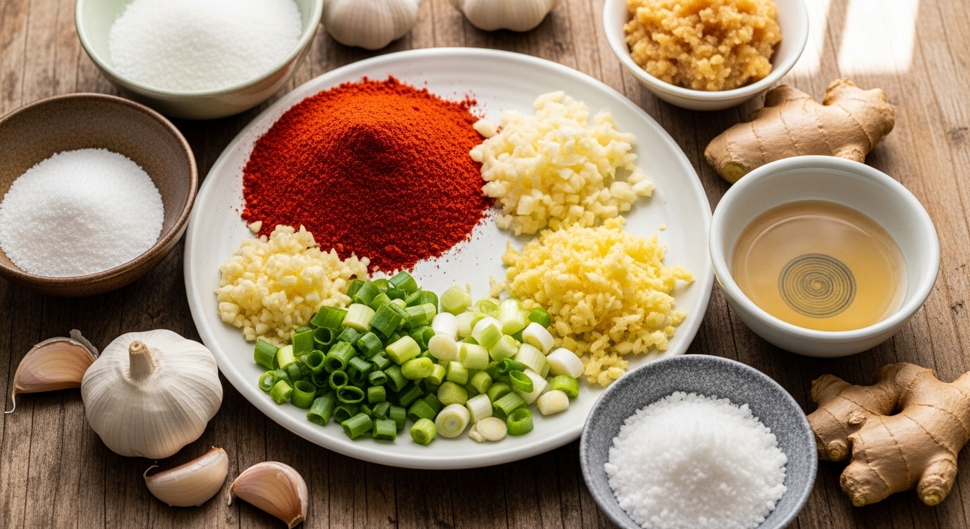 • 양념장 재료로는 다진 마늘, 생강, 멸치액젓, 고춧가루, 설탕, 매실청 등을 추천