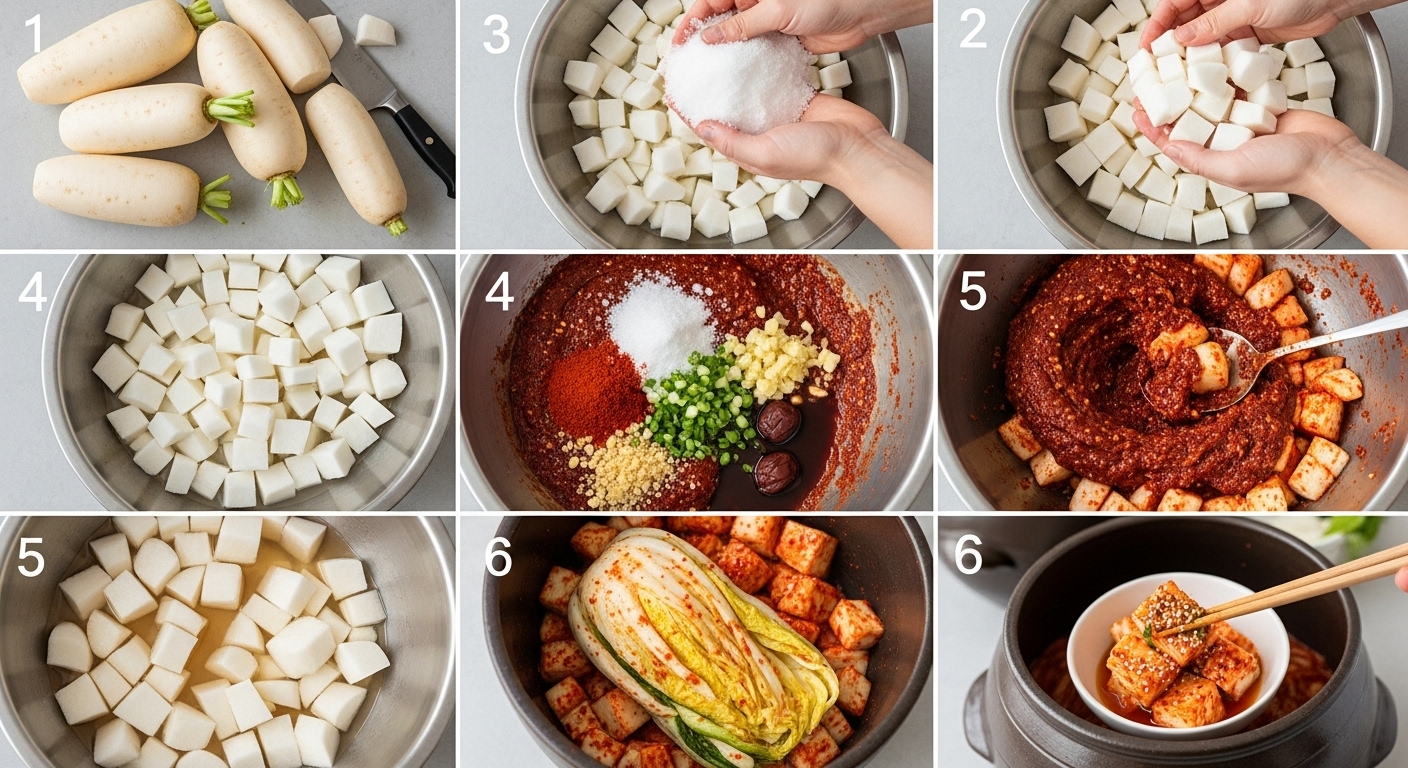 신선한 무 선택법부터 절이는 방법, 양념장 만드는 법, 숙성 팁까지. 균형잡힌 맛을 내는 비법과 현대적으로 변형한 깍두기 레시피, 그리고 실패 없는 포인트를 상세히 공개합니다.