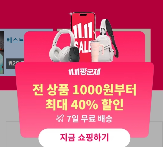 행사는 11월 11일 0시부터 19일 23시 59분까지 9일간 진행되며, 생활용품, 신선식품, 전자기기, 패션용품 등 다양한 상품에서 최대 50% 할인과 한정 특가가 제공됩니다.
