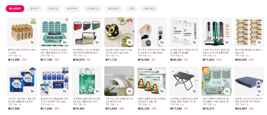 - 생활밀착형 신선식품, 전자제품, 반려용품, 패션∙스포츠 상품 등 폭넓은 카테고리