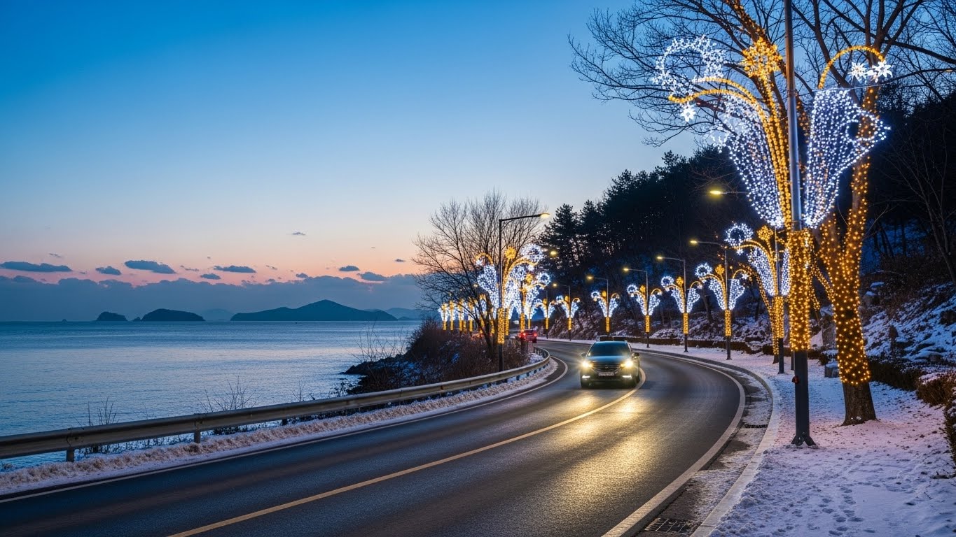 남해 바다와 크리스마스 조명이 어우러진 경남 겨울 드라이브