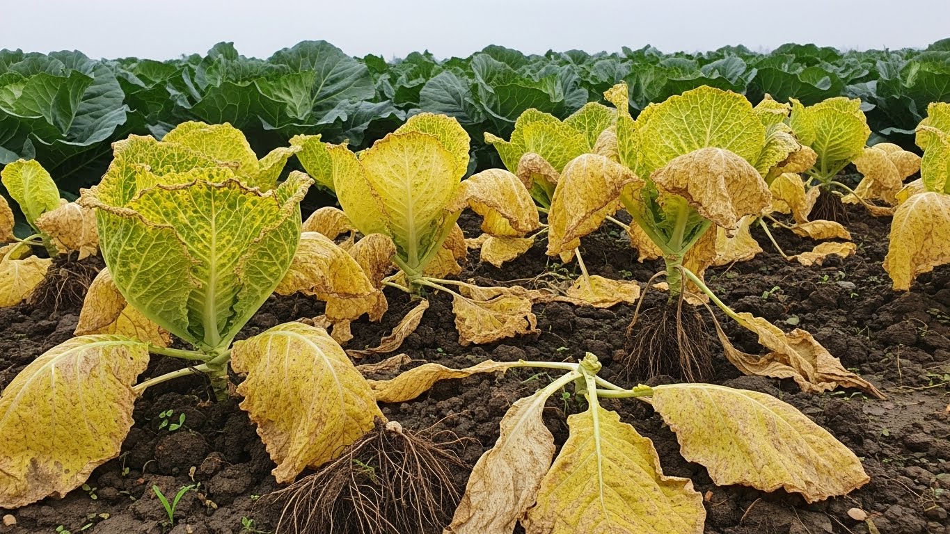 배추를 같은 땅에 2~3년 연속 재배하면 토양내 병원균이 급증해 뿌리썩음병, 흰곰팡이병, 선충병 등이 발생합니다. 주요 증상으로는 싹이 잘 안 나고, 나와도 곧 시들거나 잎이 누렇게 변하며, 뿌리가 검게 썩는 현상이 나타납니다.