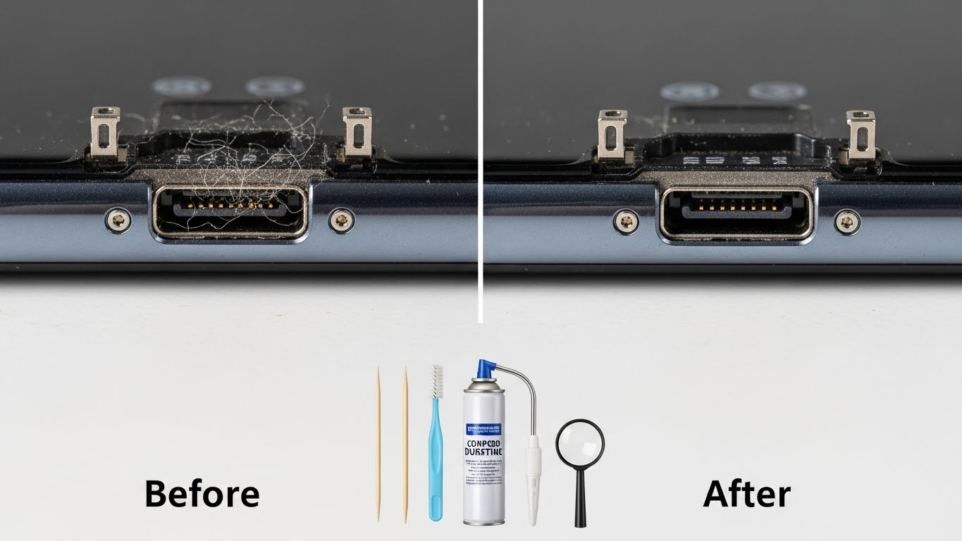 충전구에 먼지·보풀·린트가 쌓이면 접촉불량이 생깁니다.
