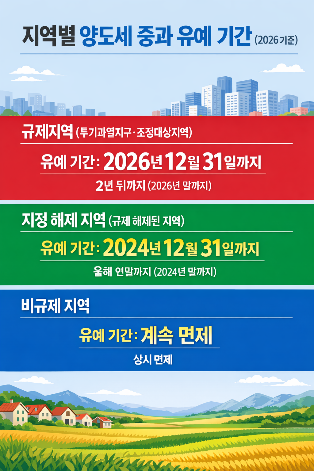 지역별 양도세 중과 유예 기간 (2026 기준)