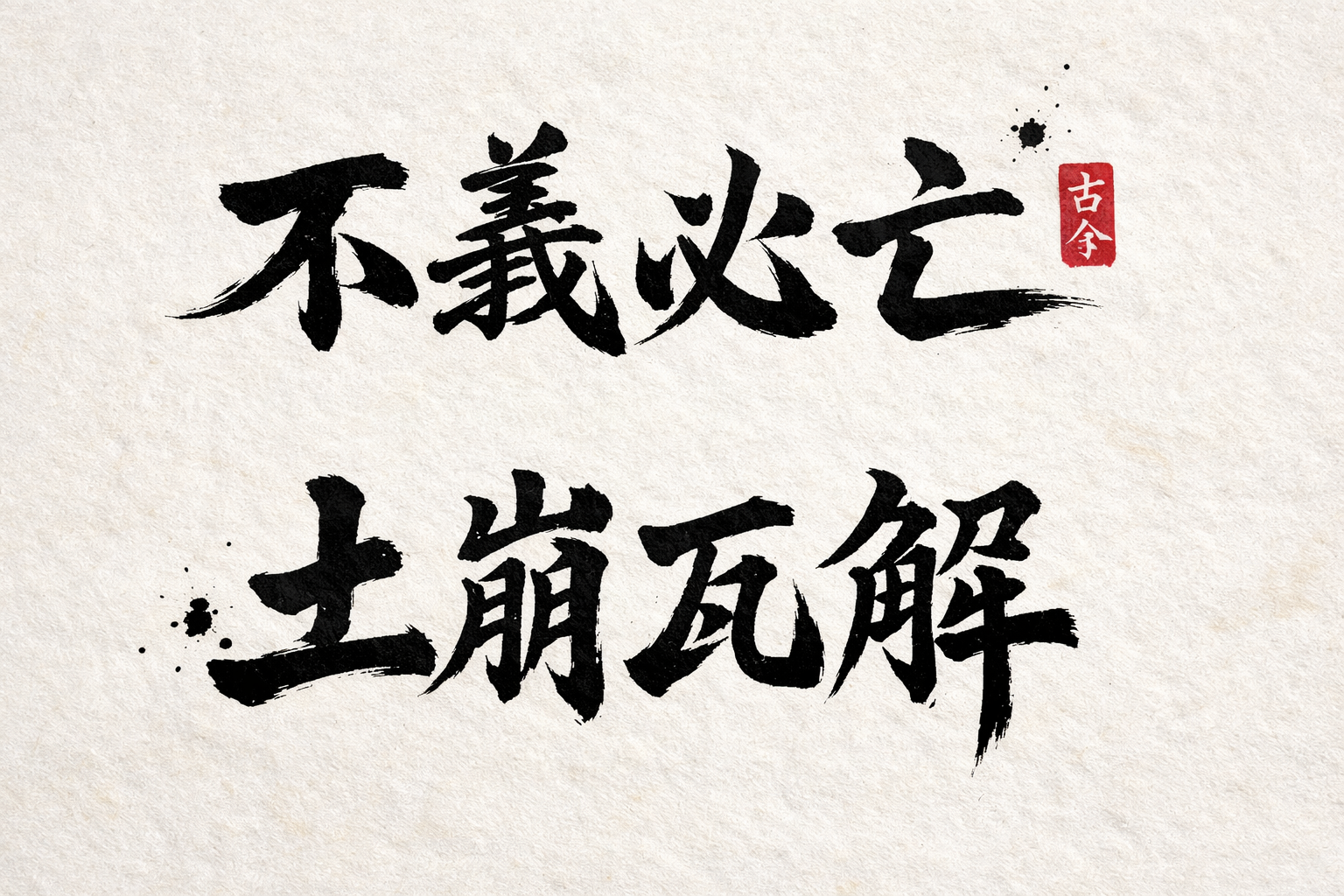 ⇒ **“의롭지 못하면 반드시 망한다”**, 부정·부패는 결국 무너진다는 경고의 사자성어.