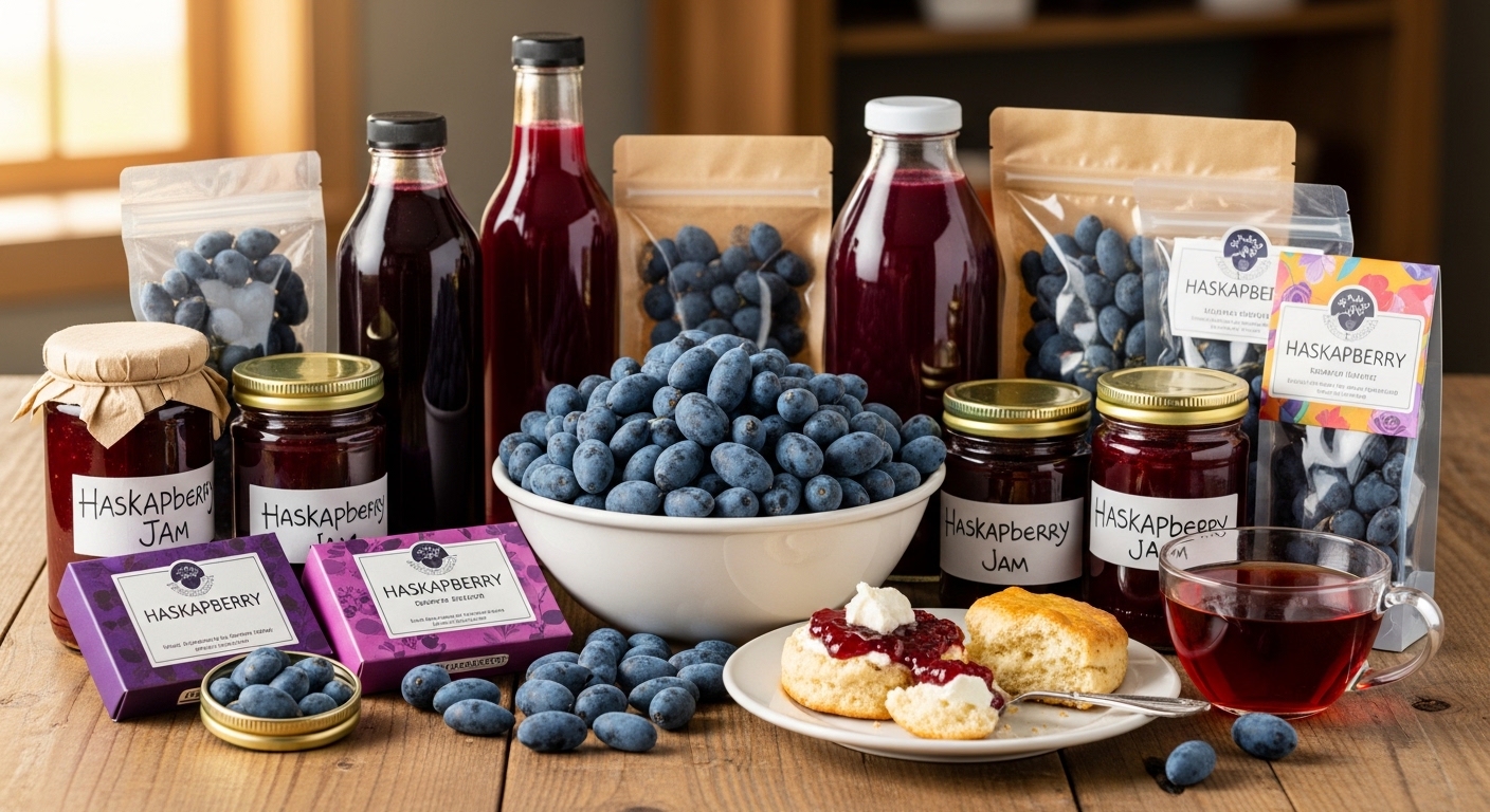 하스카프베리(Haskap Berry)는 댕댕이나무 열매로, 시베리아·캐나다 북부 추운 지역 원산지. '오래 사는 열매'라는 아이누족 이름처럼 장수 음식으로 불림. 길쭉한 보랏빛 모양, 새콤달콤 맛이 블루베리+라즈베리 혼합.