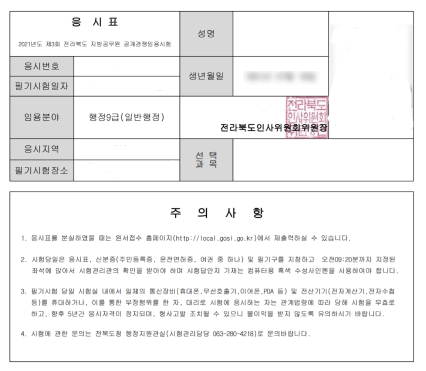 4. 응시표 출력 가이드