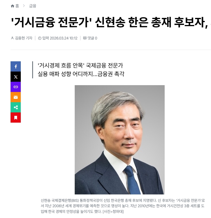 - 신현송 후보는 **외부 요인(유가·환율)**이 물가를 자극할 때, 금리만으로 대응하는 것의 부작용도 강조해 왔습니다.[web:284]