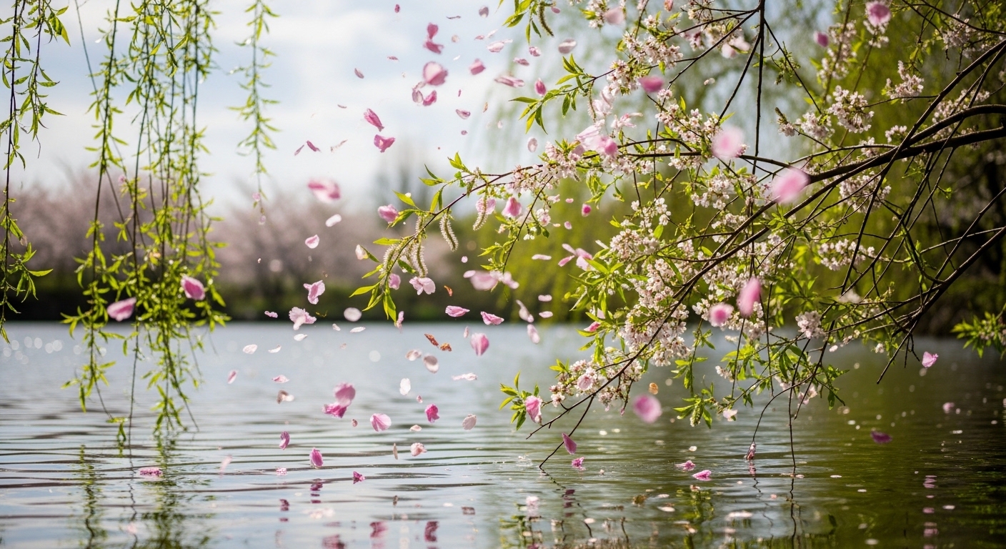 봄바람에 꽃잎과 버들가지가 흩날리는 풍경, 춘풍화류의 정수