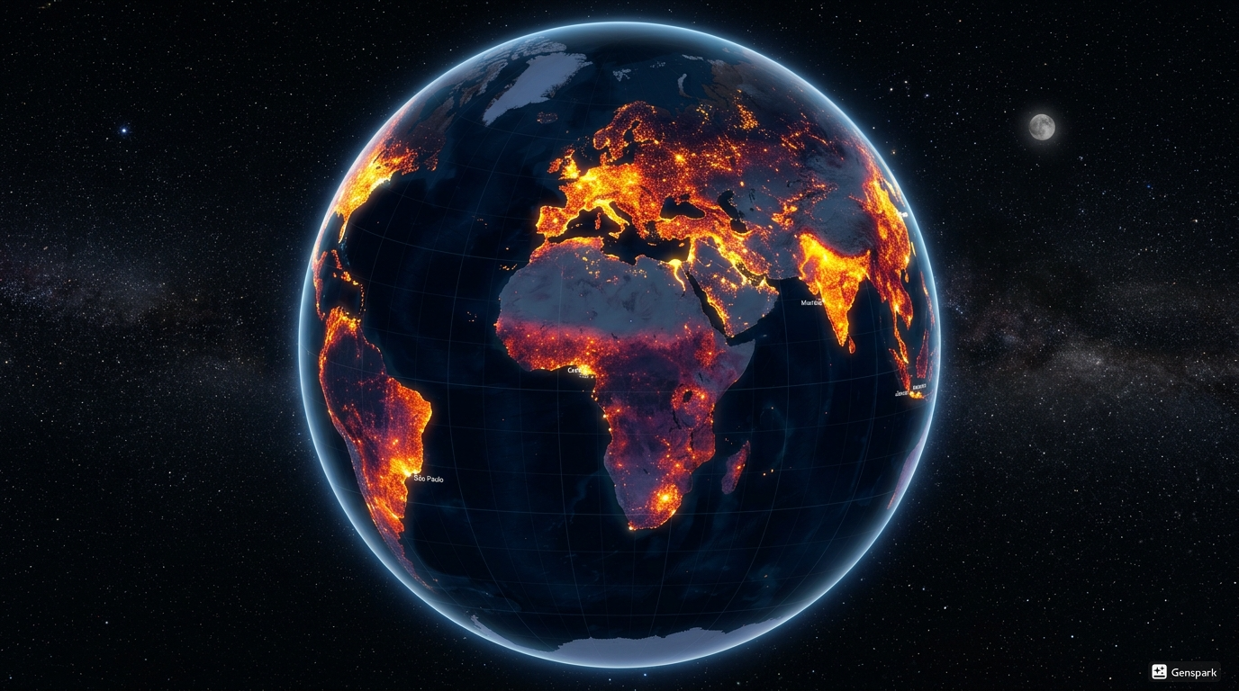 지구본과 인구 밀도를 시각적으로 표현 (AI활용이미지)
