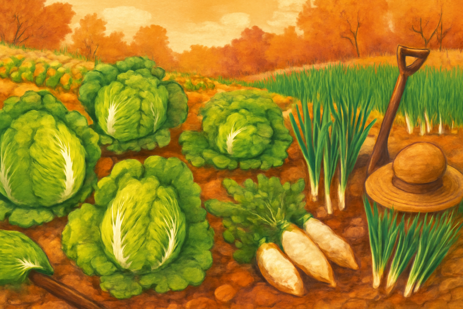 가을 김장 농사 제대로 준비하면 1년 먹거리 걱정 끝! 김치의 핵심 원료 배추, 무, 쪽파 재배법부터 밭갈이·시비·파종·정식·병충해 방제·수확·장기 저장까지, 초보부터 베테랑까지 따라하는 250행 노하우를 안내합니다.