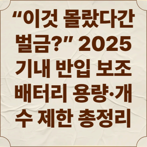 - 2025년 기준, 100Wh(27,000mAh) 이하만 기내 5개 OK, 반드시 휴대!