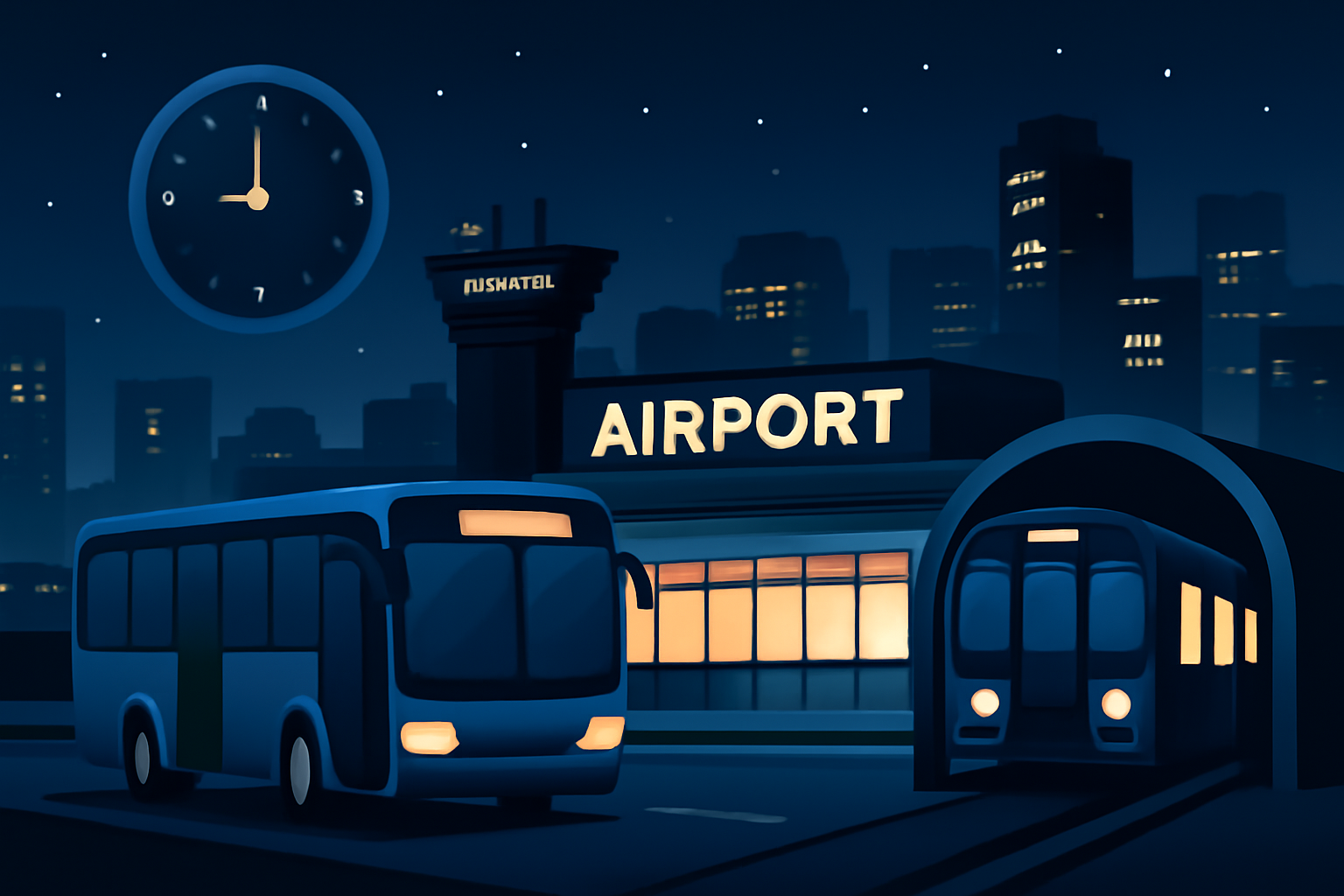 늦은 밤 공항이나 터미널 이용 시, 심야 버스와 지하철 막차 시간 확인은 필수입니다.