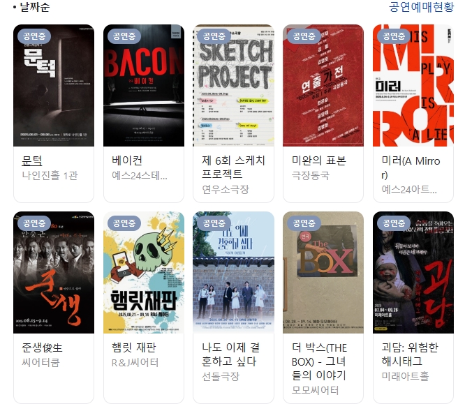 - CJ 토월극장: 인기 높은 중대형 공연 다수, 티켓 오픈 직후 빠른 예매 필수