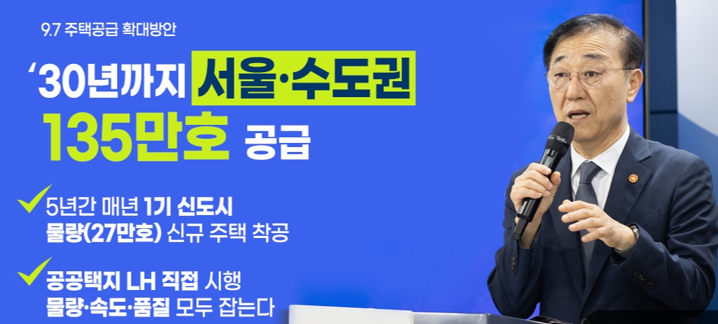 | 정부 발표: 2030년까지 수도권에 135만호 주택 공급 추진 전략 (0) | 2025.09.09 |