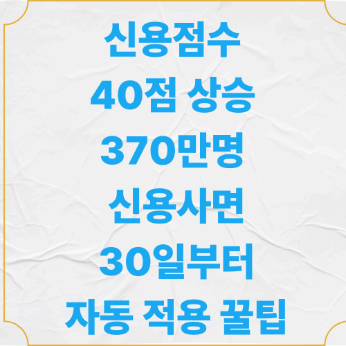 정부의 신용사면 정책으로 대상자 370만명의 신용점수가 30일부터 자동 반영되어 최대 40점 상승합니다. 누구나 확인할 수 있는 적용 절차와 주의사항, 그리고 빠르게 혜택받는 꿀팁을 모두 정리했습니다.
