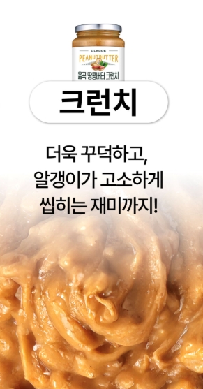 국내산 땅콩 100%로 만든 옳곡 땅콩버터 크런치가 운동 후 간식으로 큰 인기를 끌고 있습니다.