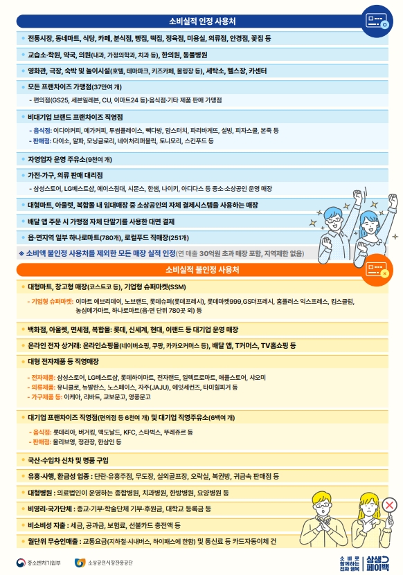 상생페이백은 소상공인 지원 목적이므로 대기업인 대형마트, 백화점은 제외됩니다. 동네 슈퍼, 중소형 마트는 사용 가능합니다.